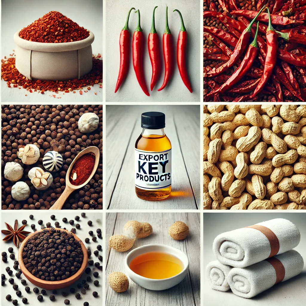 From the bustling farms and production hubs of India to destinations worldwide, we ensure that every product meets the highest international standards. Whether it’s the fiery Guntur dry chillies or the soft and durable terry towels, our offerings are carefully sourced, processed, and packaged with precision to maintain quality at every step.